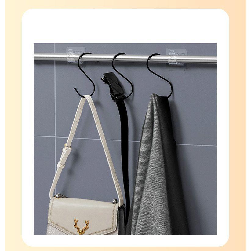 ポール用フック 4個セット ポールホルダー 粘着式 ポールクリップ 壁付けハンガー カーテンロッド カーテンポール 穴あけ不要 工具不要 ウ クリップ