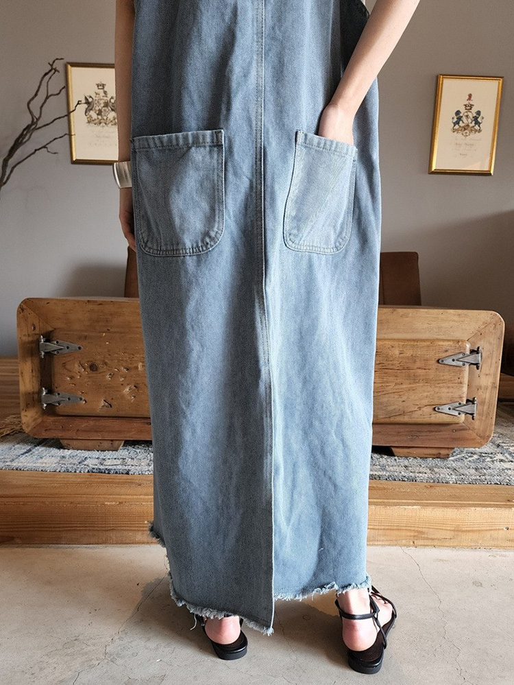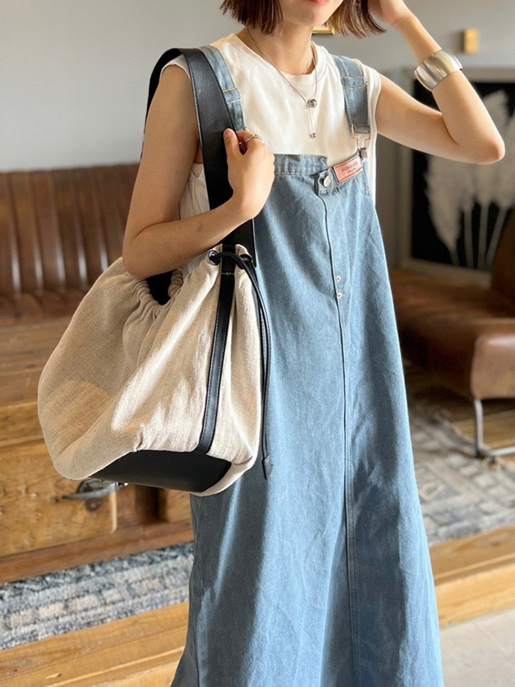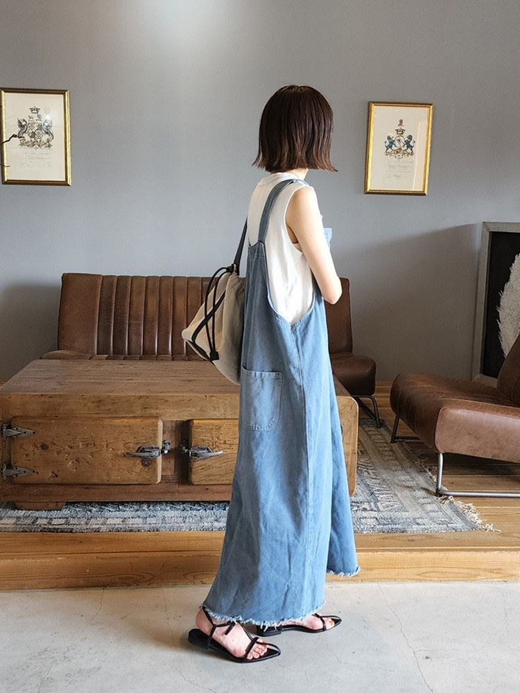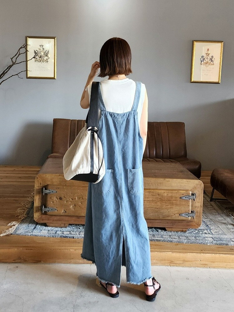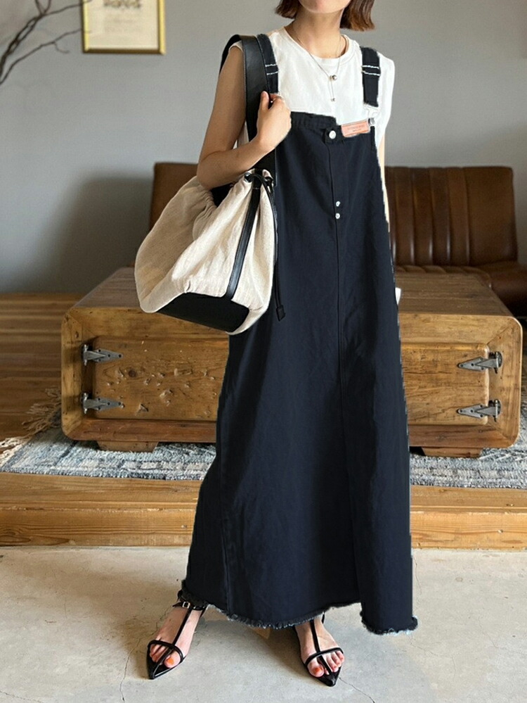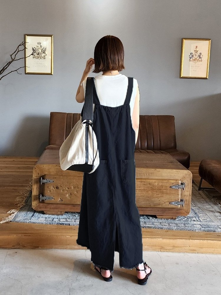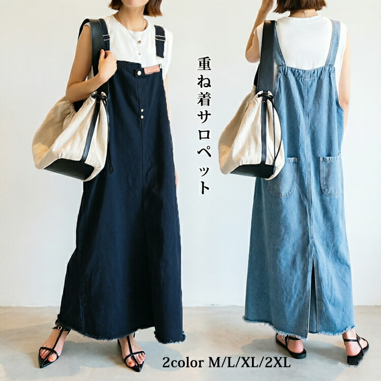 重ね着 Vネック サロペット ワンピー ブルー ブラック M L XL 2XL