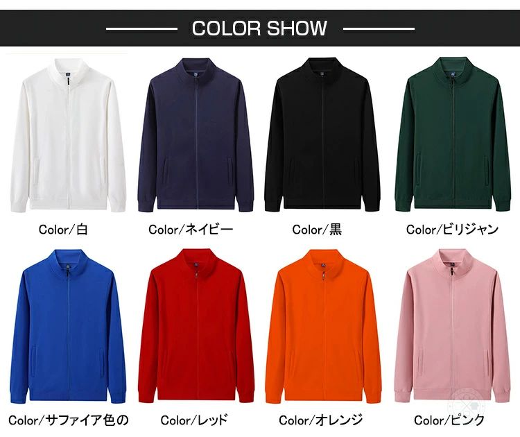 ジップアップ トレーナー スタンド ネ トップス スウェット トレーナー 新作 黒 ネイビー ビリジャン サファイア色の レッド オレンジ S M L XL 2XL 3XL 4XL 5XL