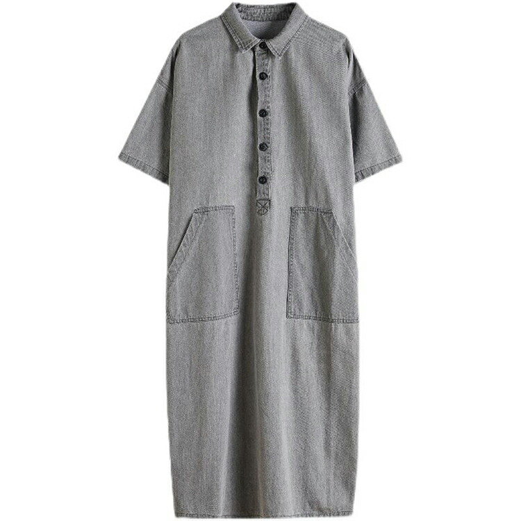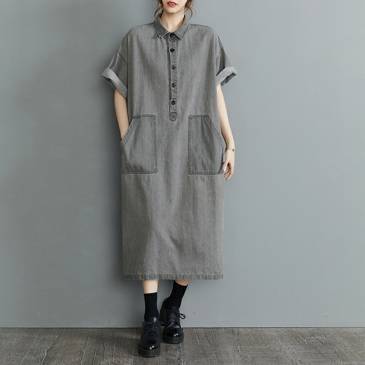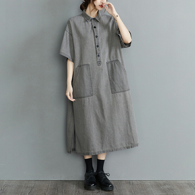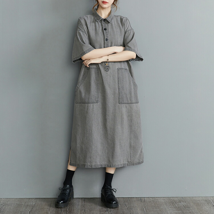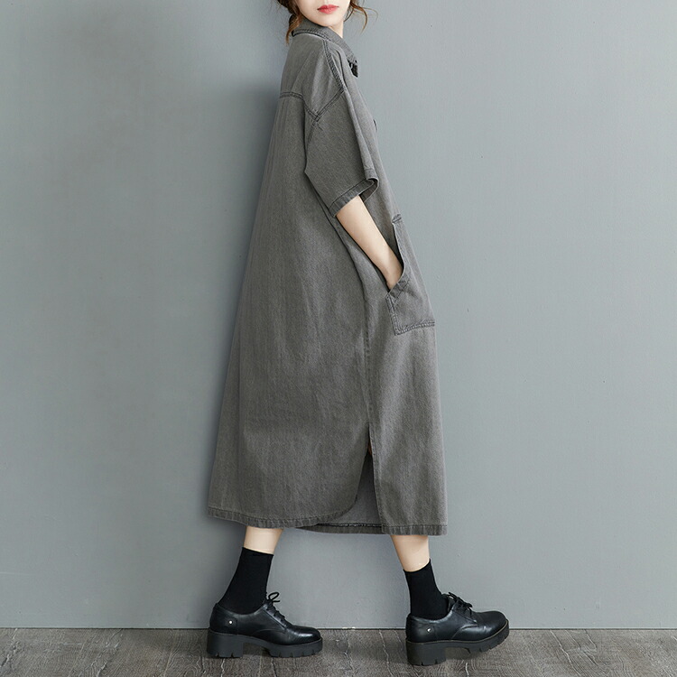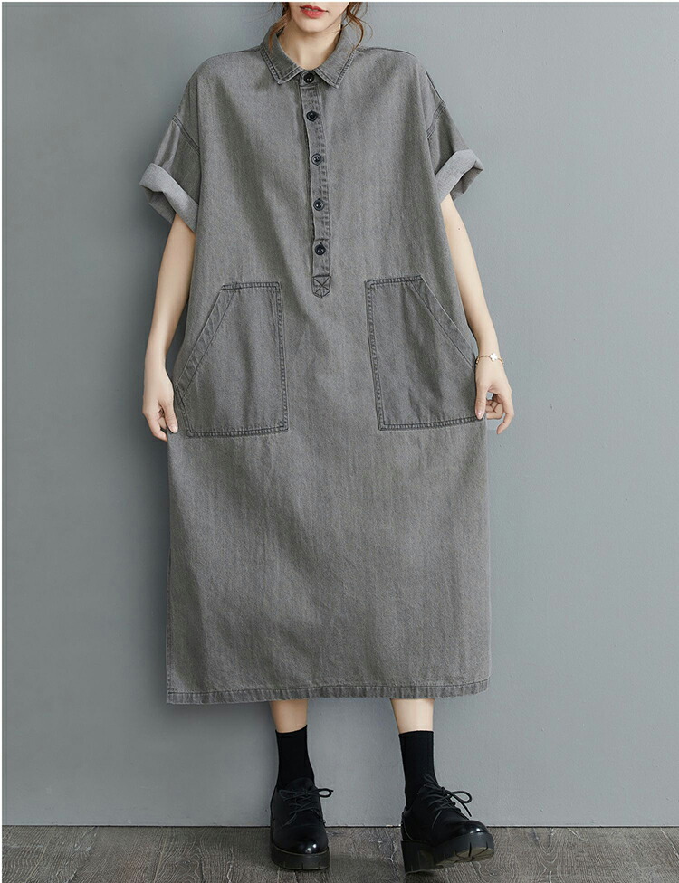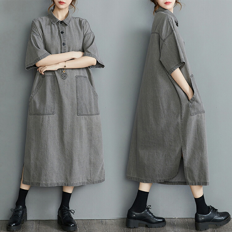 デニムロングシャツワンピース ロング L XL