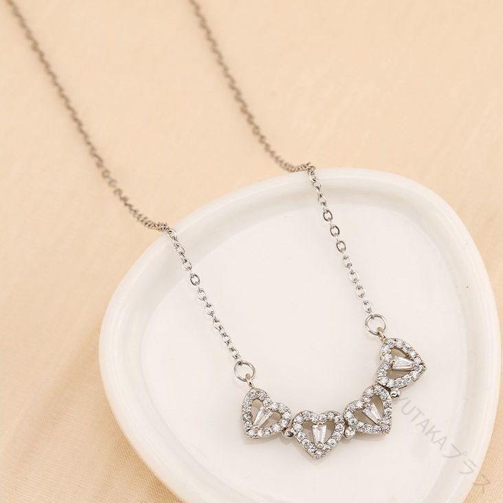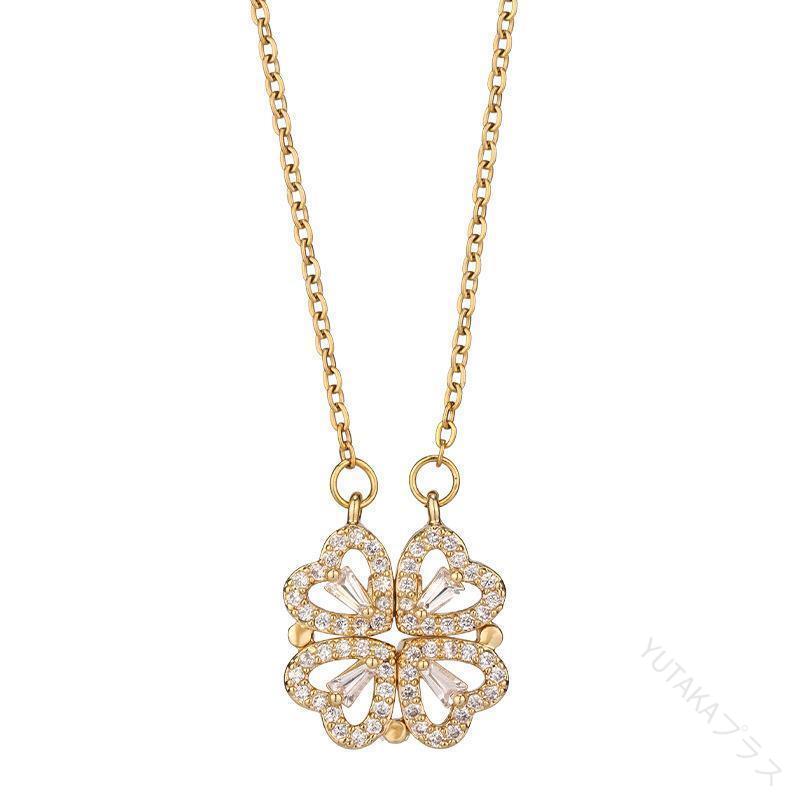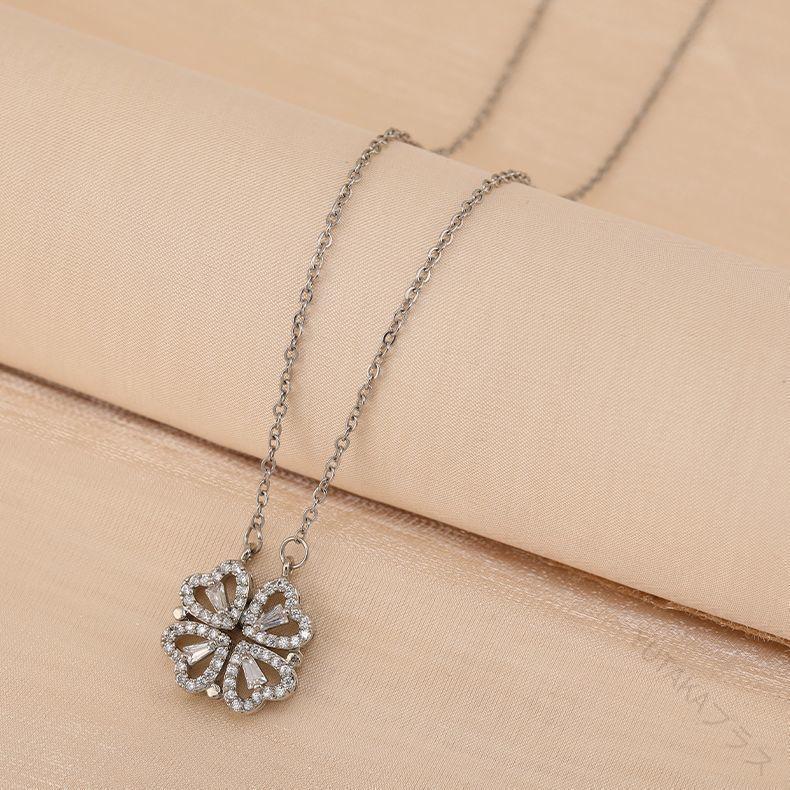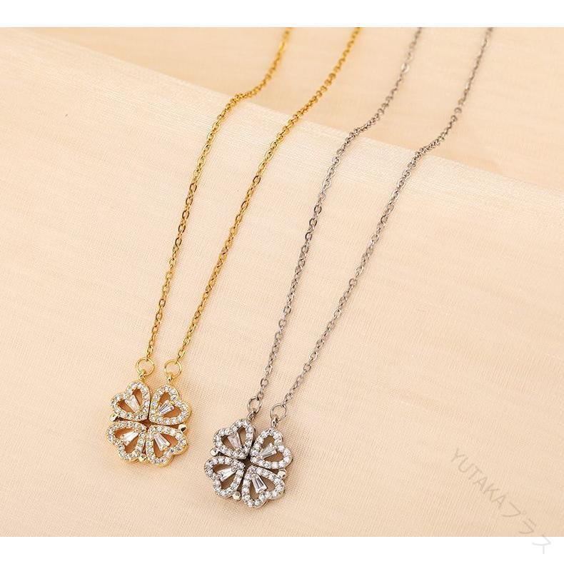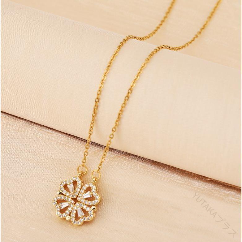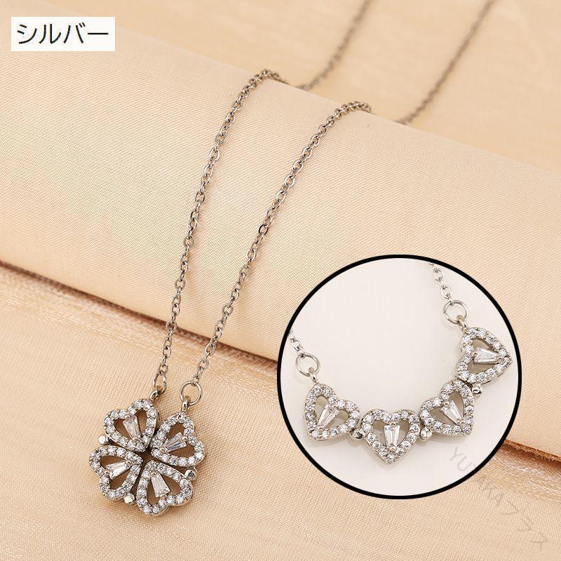 レディース ネックレス 女性用 アクセサリー クローバー ハート 四つ葉 ラインストーン 2way ペンダント 首飾り おしゃれ かわいい プレゼント ギフト 人気 普段使い おすすめ デ ジュエリー