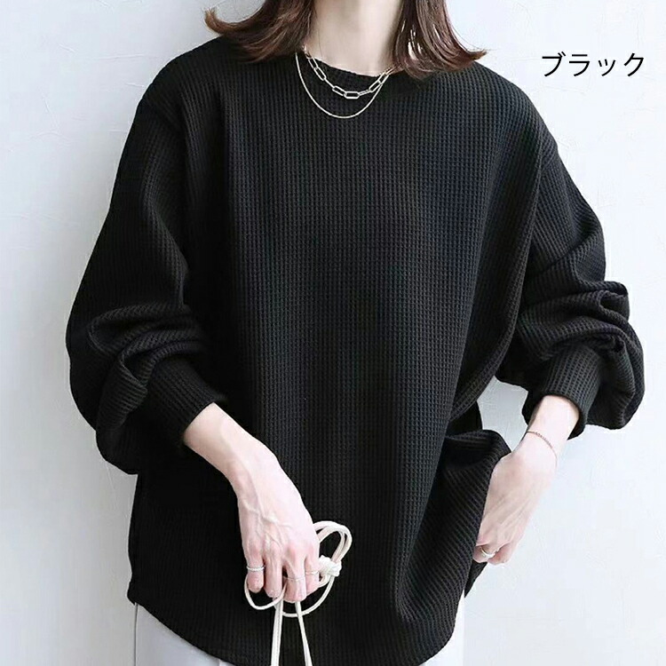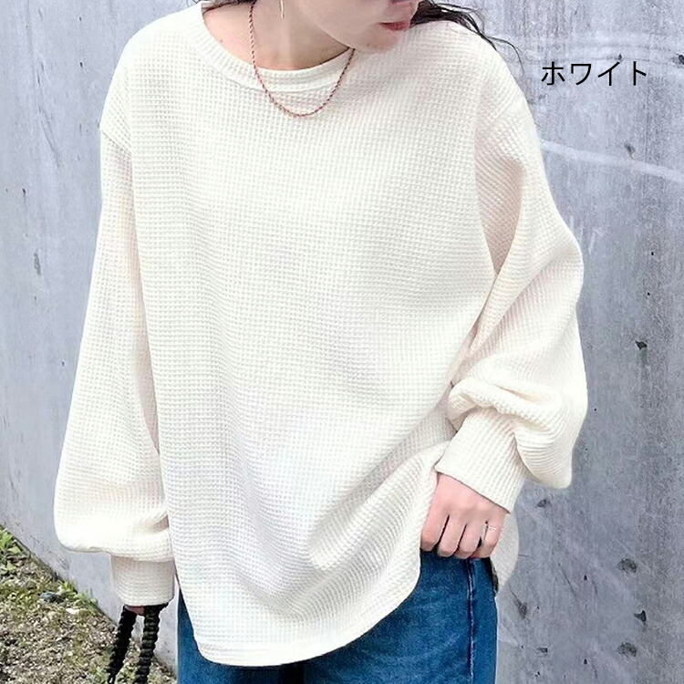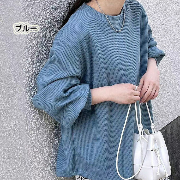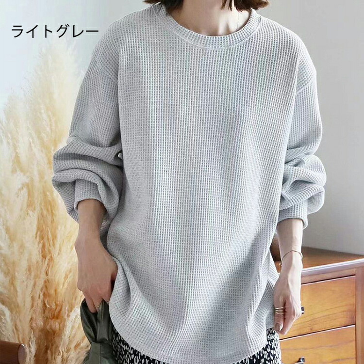 ワッフル ニット プルオーバー レディ レディースファッション 通販 ホワイト ライトグレー ブラック 杏色 グリーン ブルー M L