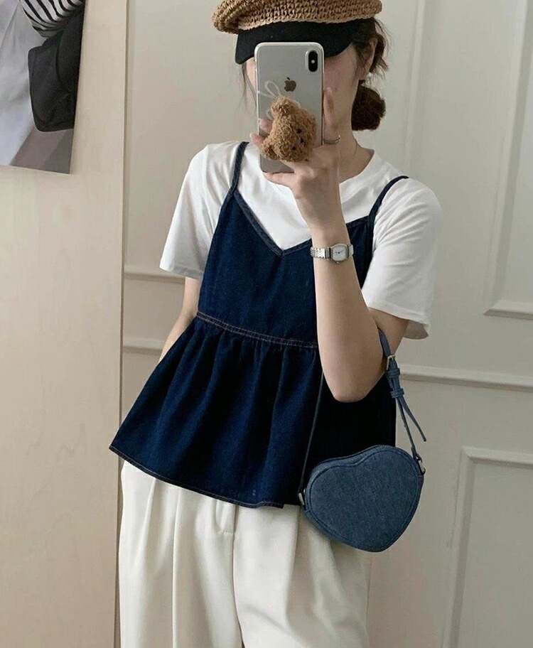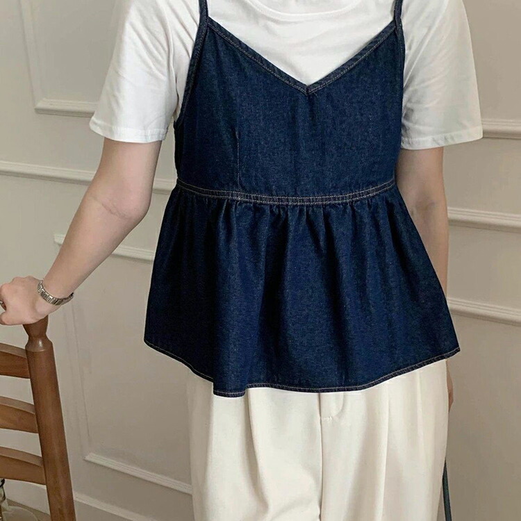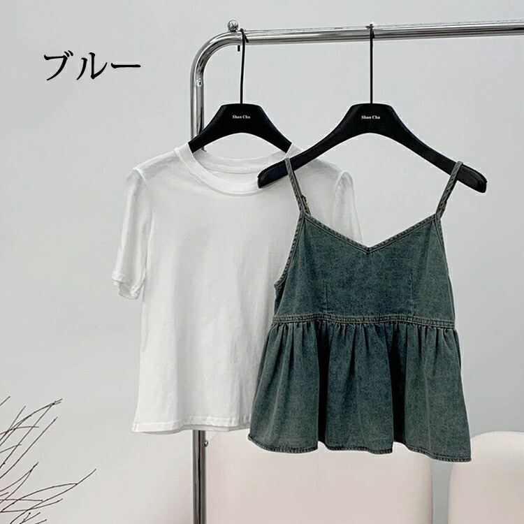 デニム キャミソール トップス レディ レディースファッション 特集 ブルー 紺色 S M L XL
