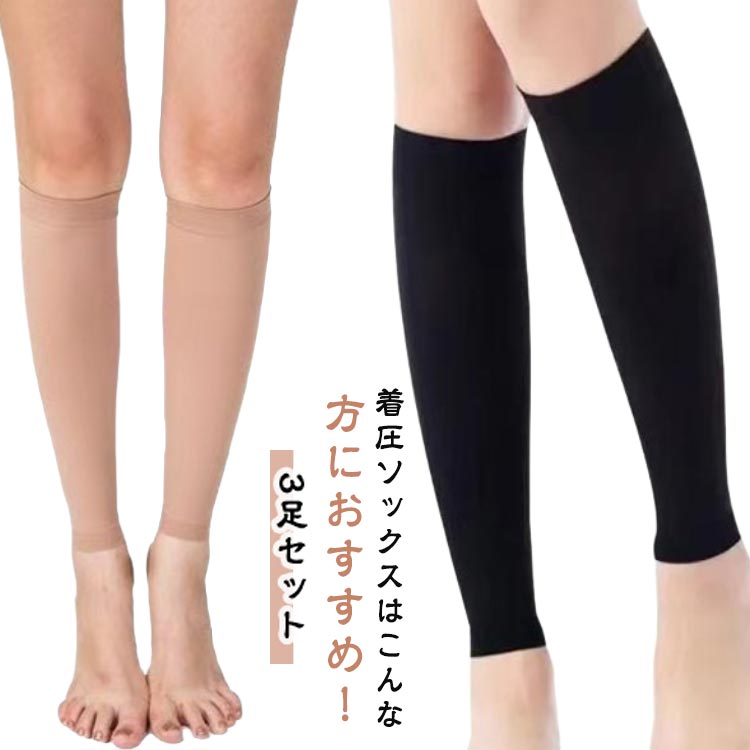 弾性ストッキング 着圧 ハイソックス サポーター 着圧ソックス むくみ つま先なし ふくらはぎ 靴下 着圧タイツ オープントゥ 着圧レギンス 夜用 レディース メンズ ナイ ストッキング