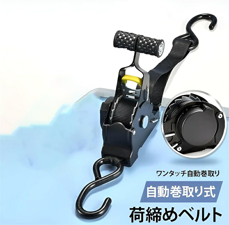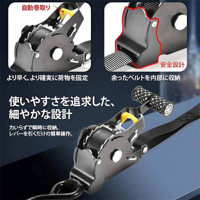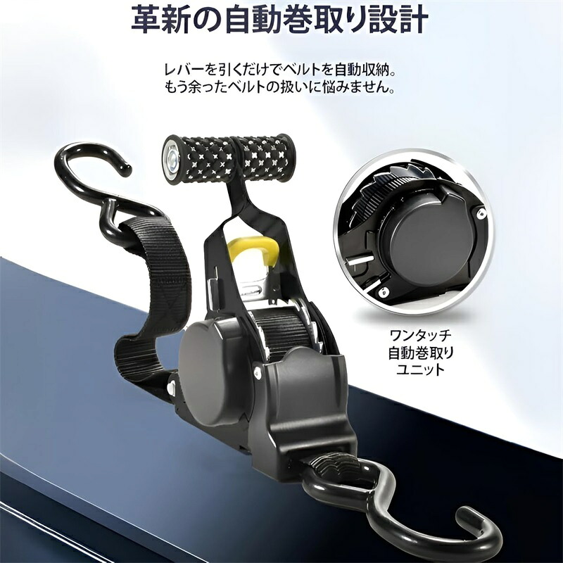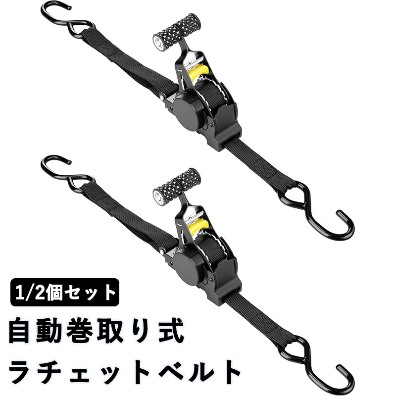 自動巻取り式 ラチェットベルト ラッシングベルト ラチェット式 1 2本セットタイダウンベルト 多用途 引越し 運搬 トラック 車載用 バイク キャンプ 物流作業 強力固定 運送時の荷物の アウトドア