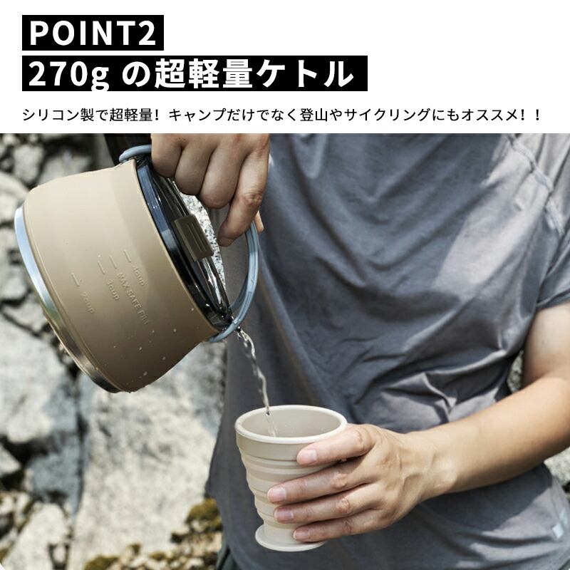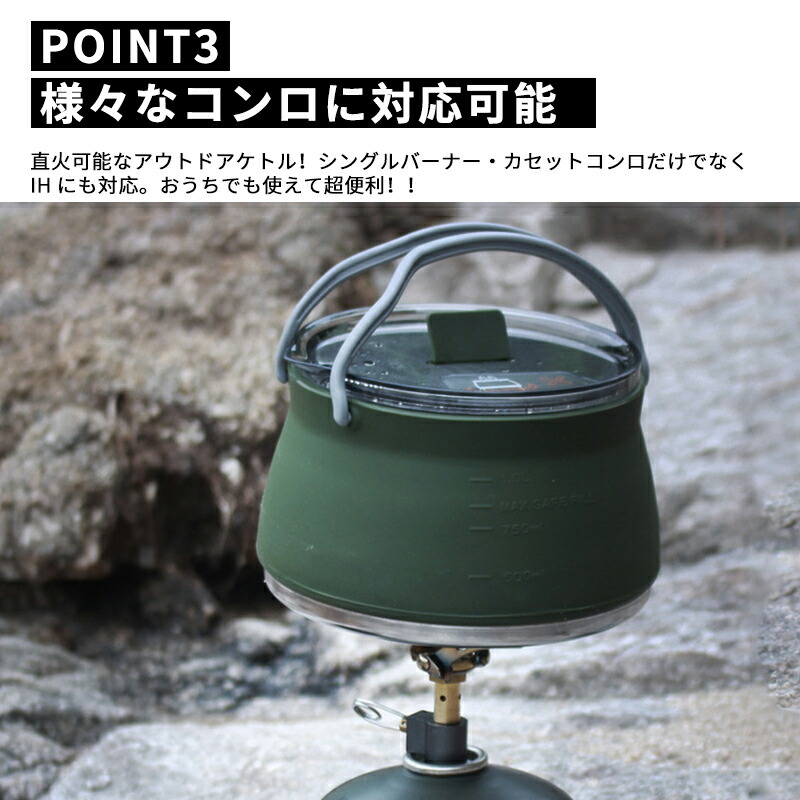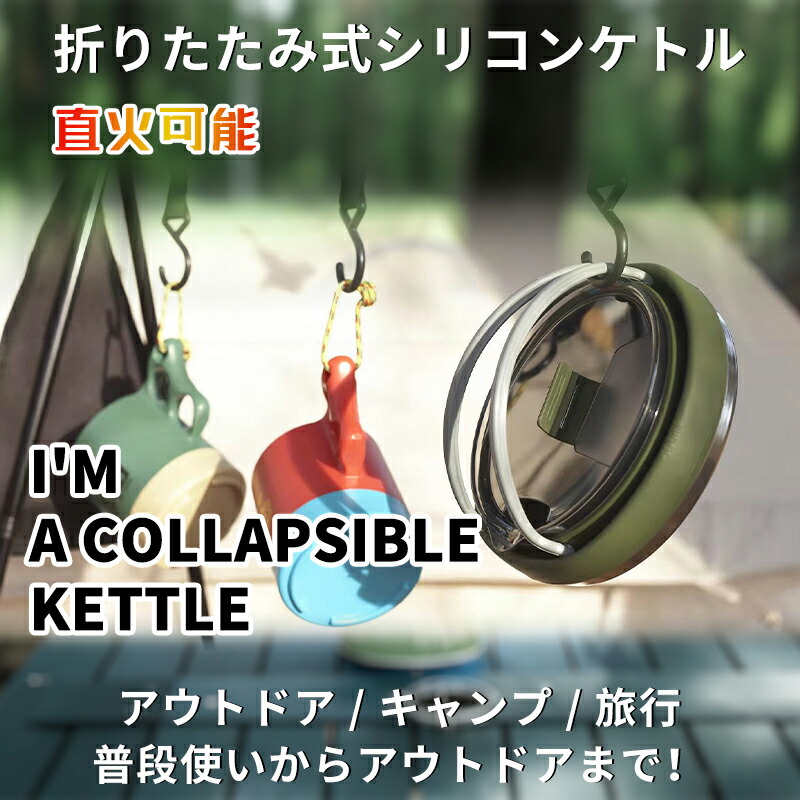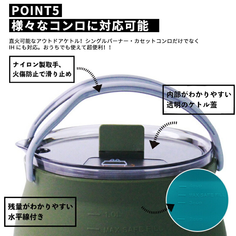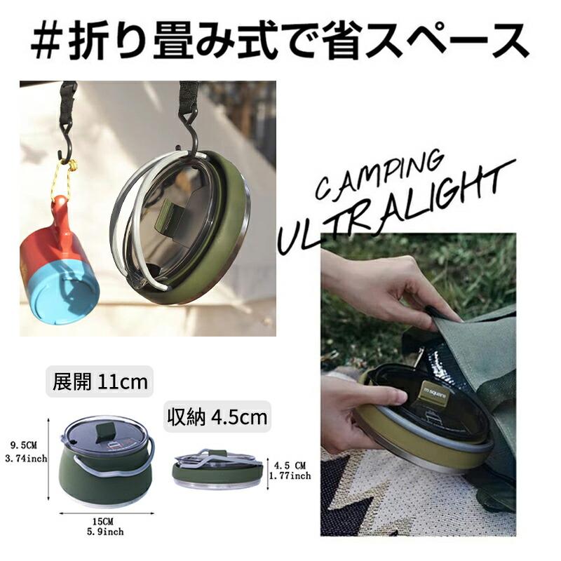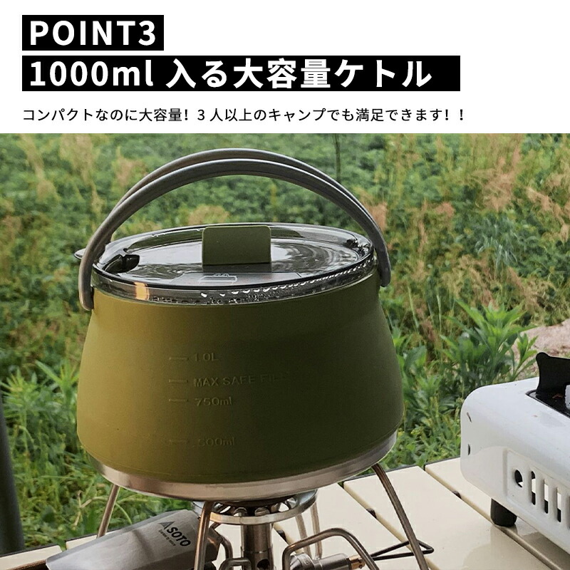 キャンプ ケトル やかん 1.0L 折 グリーン カーキ ブラック
