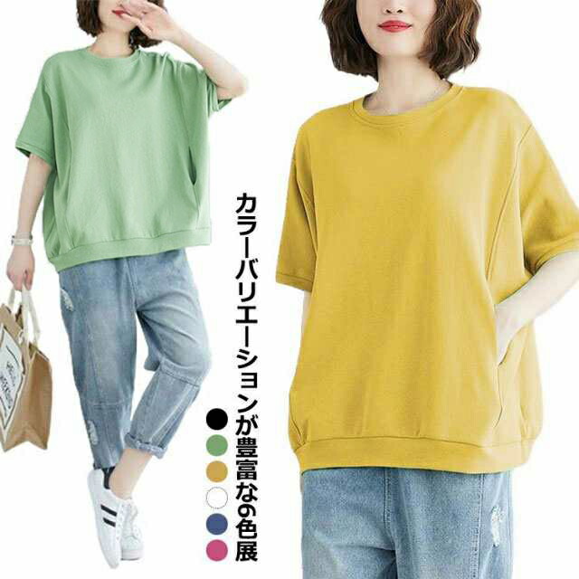 トレーナー レディース 春 おしゃれ トップス スウェット トレーナー 通販 ブラック グリーン イエロー ホワイト ブルー ローズピンク M L XL 2XL 3XL 4XL