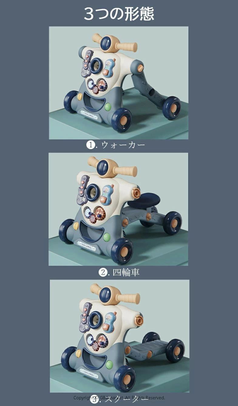 手押し車 ウォーカー ベビーウォーカー 手押し スクーター 赤ちゃん こども 歩く練習 知育 勉強 3in1 ベビー 8ヶ月 O脚防止 効果音 歩行器 歩行補助 おもちゃ ファース よちよち 知育玩具