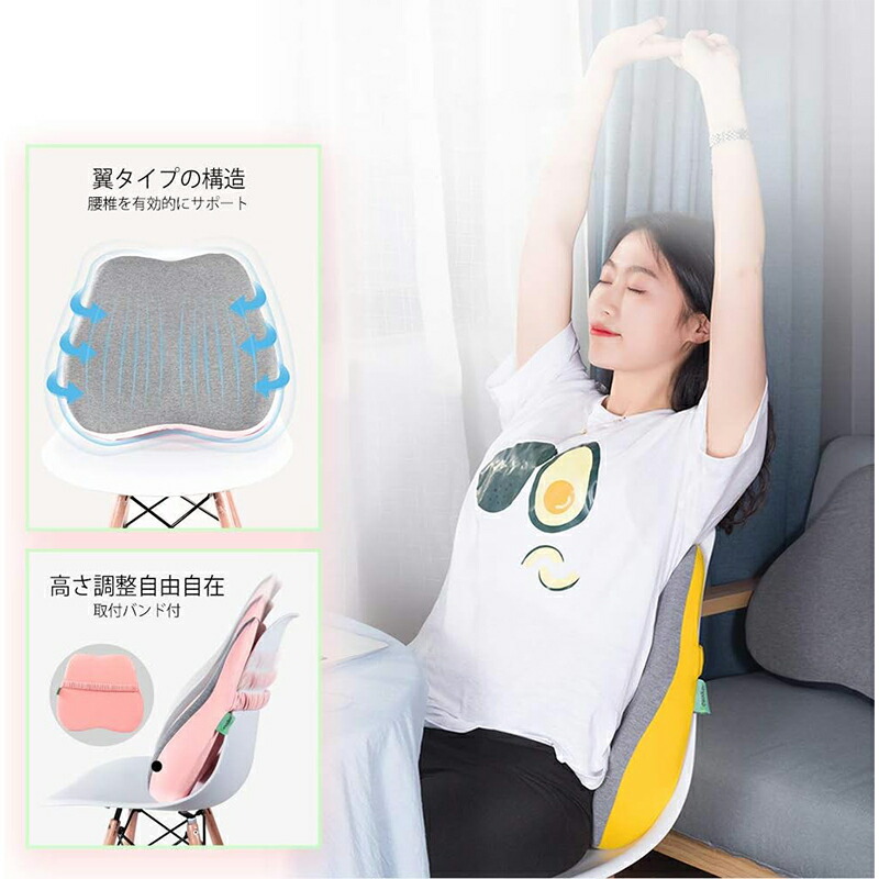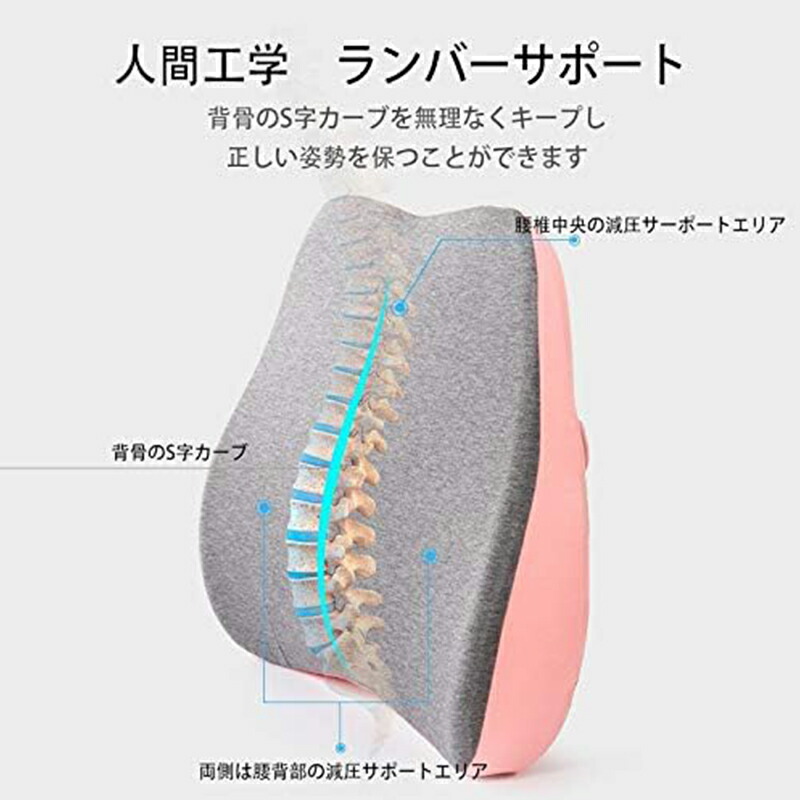 腰クッション ランバーサポート 低反発 紺色 ピンク グリーン イエロー
