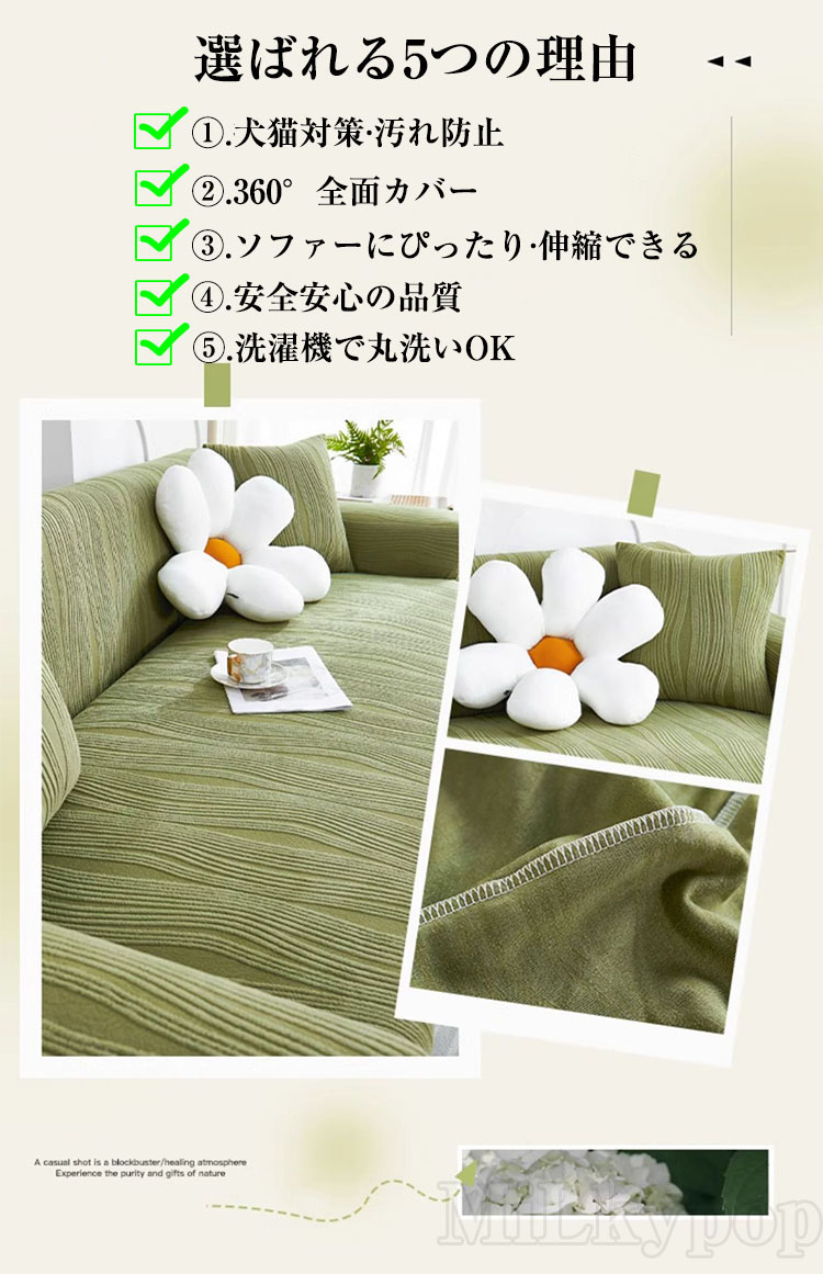 ソファーカバー 洗える 1人掛け 2人 グリーン ブルー グレー ピンク ライトグレー クリーム 1人掛け90-140cm 2人掛け145-185cm 3人掛け190-230cm 4人掛け235-300cm 5人掛け305-360cm