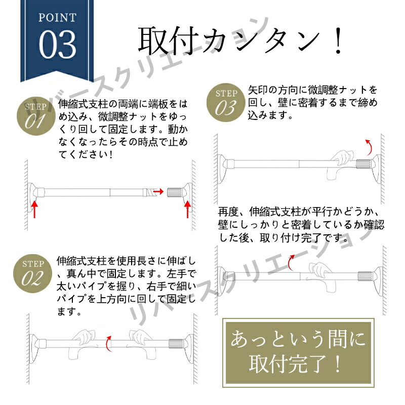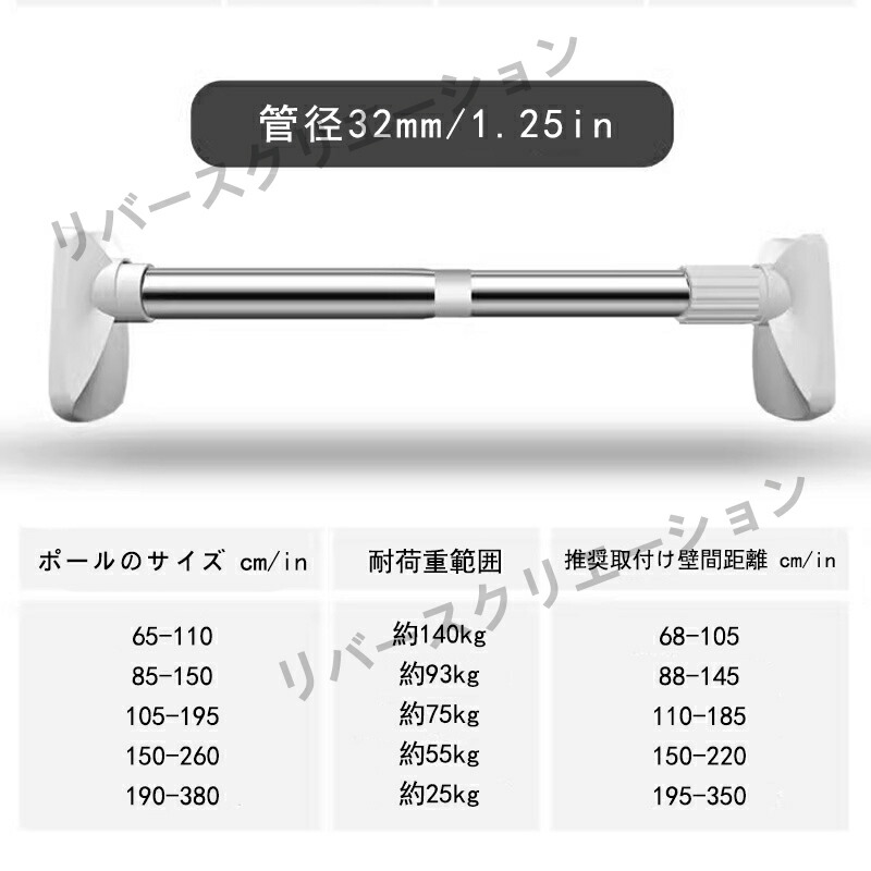 強力突っ張り棒 つっぱり棒 ステンレス 洗濯用品 物干し竿 特集 65cm-105cm 85cm-145cm 105cm-185cm 150cm-260cm 150cm-380cm