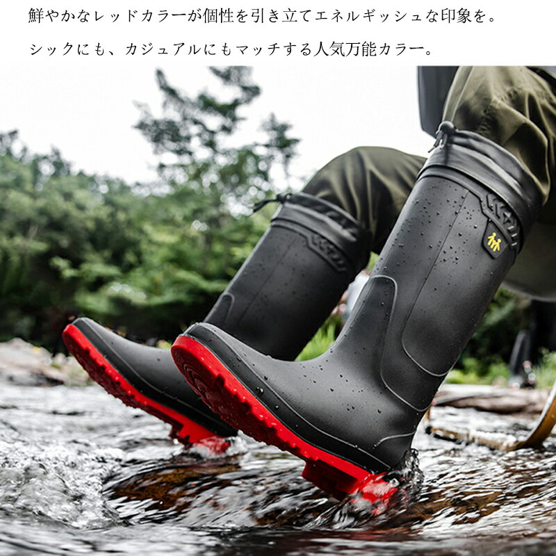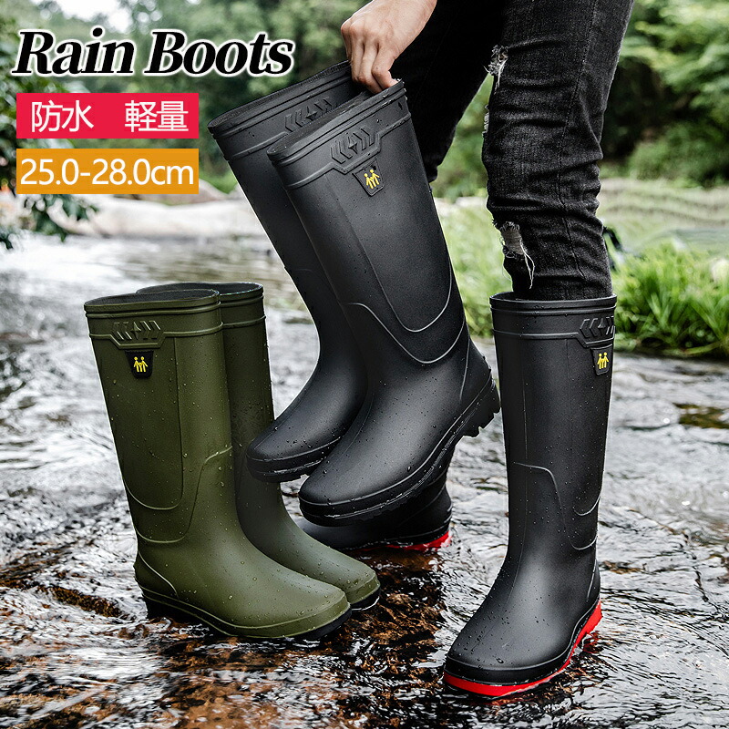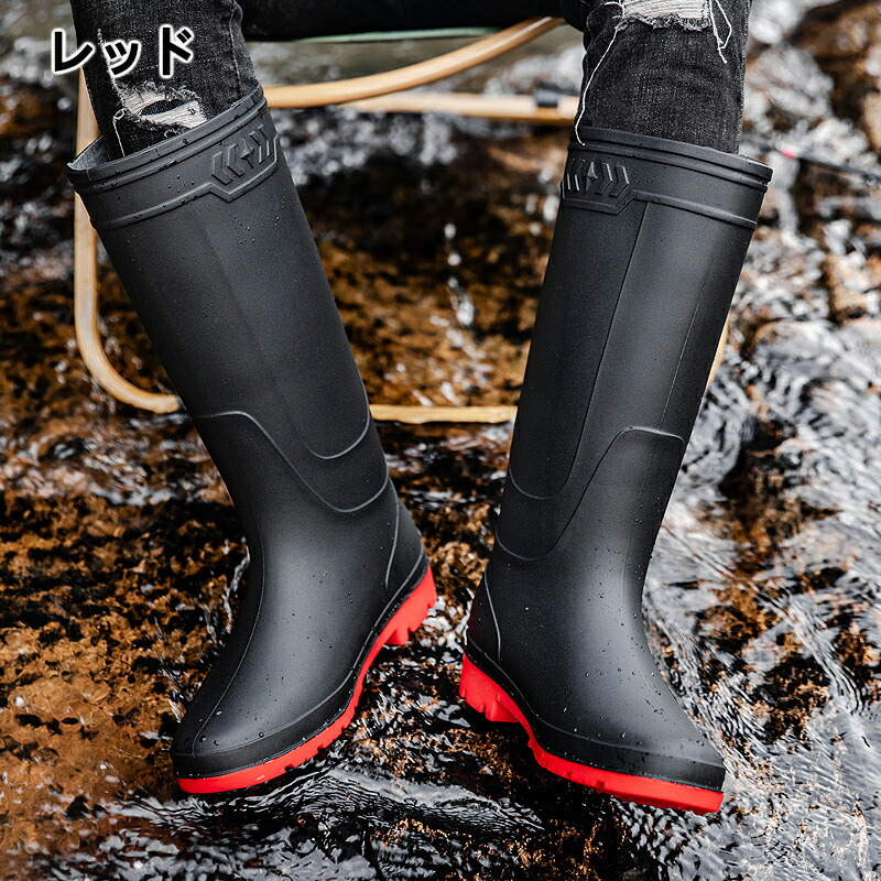 レインブーツ メンズ 防水 ロング丈 メンズ靴 レインシューズ 長靴 新登場! ブラック レッド グリーン 25.0cm 25.5cm 26.0cm 26.5cm 27.0cm 27.5cm 28.0cm