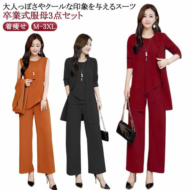 大人っぽさやクールな印象を与えるスーツ。卒業式服 母 3点セット。セレモニースーツ セットアップ