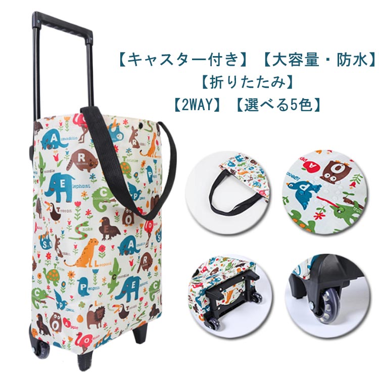 4輪 エコバッグ 折りたたみ かわいい 大きい 買い物袋 キャスター付き ショルダーバッグ ショッピングバッグ 荷物の量に合わせて伸縮可能ショッピングカート