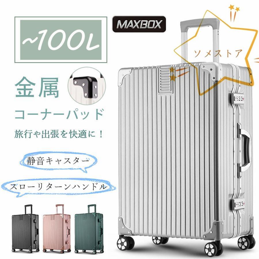 スーツケース サイズ キャリーケース 超大容量 大型 静音 アルミ 旅行カバン キャリーバッグ 軽量 静か 修学旅行 海外旅行 2泊3日 7泊 夏休み