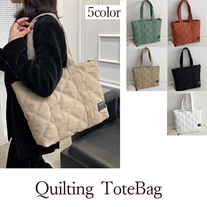 キルティングトートバッグ 大きめ 大容量 4 中綿 トートバッグ ショルダー 中綿バッグ 旅行バッグ 韓国 秋冬バッグ おしゃれ
