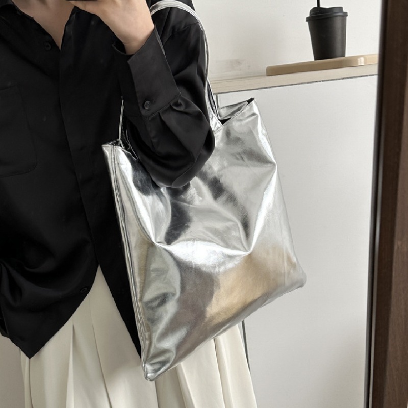 トートバッグ レディース 大容量 聚 シルバー ブラック 型 ステッチ 学生 肩掛け 鞄 普段使い