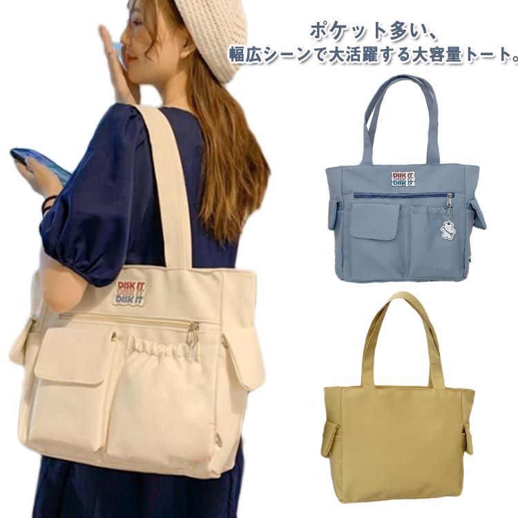 大きめ 鞄 学生 肩掛けバッグ トートバッグ ナイロン エコバッグ 多収納 収納力 A4 バッグ サイドポケット 大きい おしゃれ 大容量 育児 ママバッグ 可愛い 通 ポケット