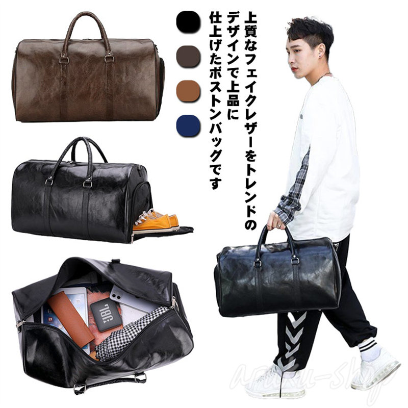 ボストンバッグ メンズ トラベルバッグ かばん 旅行鞄 1泊 2泊 3泊 出張 レザー調 ショルダーバッグ 肩掛けバッグ 斜めがけ 大人 上品 2 ユニセックス 大容量