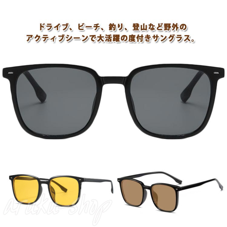 度入り メンズ 度付き眼鏡 カラーレンズ サングラス 調光 偏光サングラス 近視 スポーツ UVカット 偏光 紫外線カット おしゃれ 黒 ドライブ 釣 ボストン