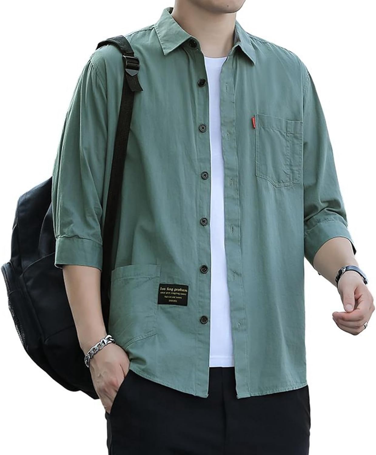 メンズ 7分袖 夏用ジャケット 重ね着 開襟 春秋着 カジュアルシャツ ポケット ワーク 作業 アウター コート 無地 純色 快適 汗染み防止 上着 通勤通学 柔らかい