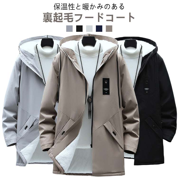 コート メンズ 裏起毛 厚手 秋冬 トレンチコート フード付き カジュアルジャケット 秋 冬 アウター フードコート ミドル丈 細身 スリム 裏ボア もこもこ ふわふわ 防寒 暖かい 軽量 中綿 保温