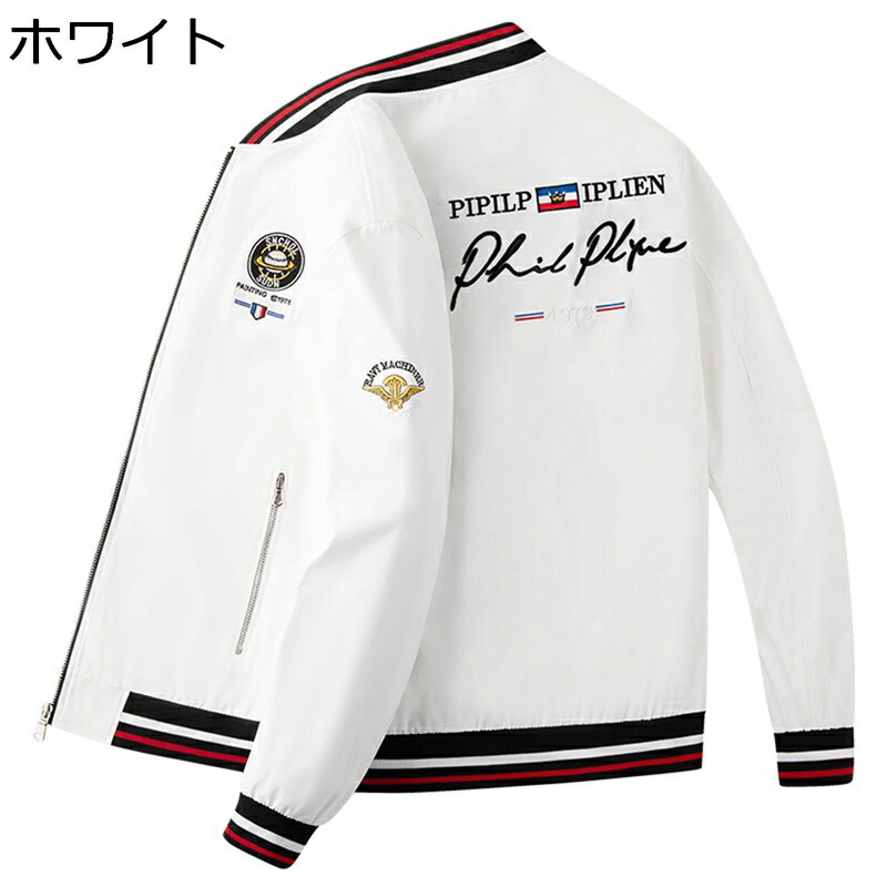 スタジャン メンズ 刺繍 フライトジャケット カジュアル 長袖 スリム ジャンパー ブルゾン ワークジャケット 薄手 防寒 防風 ジッパー アウター 通勤 ウオーキング お洒落