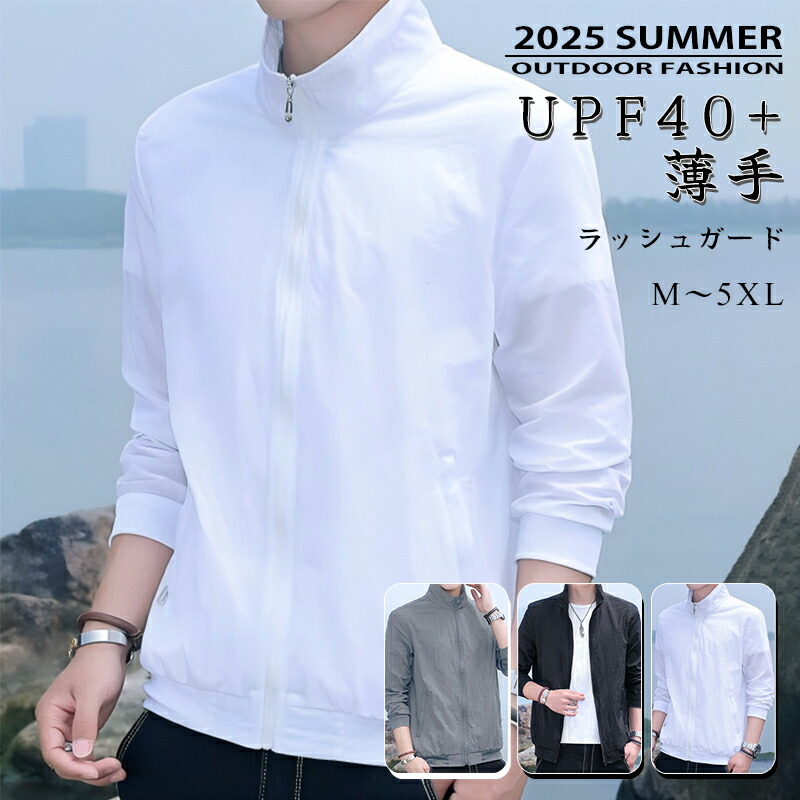夏用 紫外線対策 ジップアップ UPF50+ ジャケット 長袖 軽量 ブルゾン ラッシュガード 日焼け防止 吸汗速乾 接触冷感 スタジャン 薄手 メンズ 冷房対策 無地 アウト ジャンパー