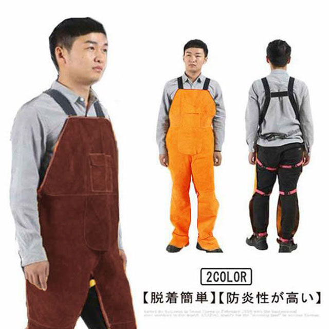 オーバーオール 牛革 エプロン 溶接 つなぎ 作業服 おしゃれ 保護服 耐熱 難燃 溶接エプロン 電気溶接 溶接用 耐摩耗 ワークエプロン 防炎 溶接防 ポケット付き