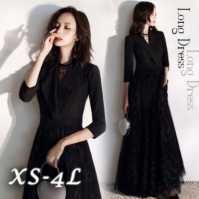 ドレス 大人 ピアノ 発表会 ロングドレス 演奏会 結婚式 母親 ピアノ発表会 黒 袖付き ロング XS 3L 4L パーティードレス 花嫁 二次会 大きいサイズ フォーマルドレス 披 司会者