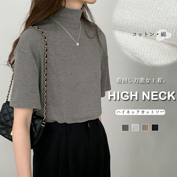春夏 半袖 インナー キレイめ ハイネック カットソー 日焼け対策 シンプル 無地 ゆったり 薄手 レディース