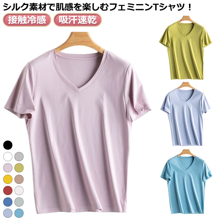 シルク インナー レディース Tシャツ カットソー シルク混 半袖 Vネック シルク絹 涼感 冷感 接触冷感 吸湿 放湿 通気 防臭 消臭 吸汗 速乾 温活 敏感肌 フォーマル 部屋着 ファッ 低刺激