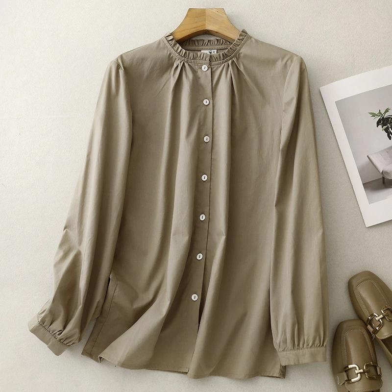 長袖シャツ 肌触り優れる ガーゼシャツ 新作 白シャツ 通気性 無地 ギャザー入り やさしいシャツ ガーゼ シンプル カジュアル コーデ 20代 30代 40代 50代