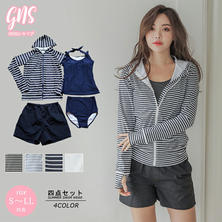 ボーダー 水着 ラッシュガード レディース セパレート 体型カバー ママ 婦人 ミセス オトナ女子 30代 40代 ぽっちゃり 露出控えめ スポーティー 長袖 タンクトップ 短パン U ビキニショーツ