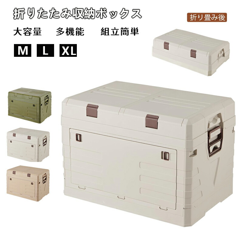 収納ボックス 折り畳みコンテナ フラップ式 折りたたみ 収納ケース 取っ手付き コンテナ ボックス キャンプ 大容量 アウトドア 厚み 強い耐荷重 組み立て簡単 家庭用 寝室 車用 衣類 書類 屋外