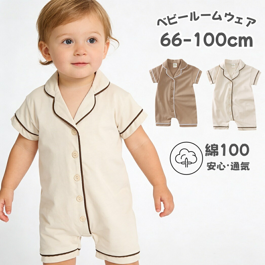 パジャマ風ロンパース ベビー パジャマ ロンパース 綿100 半袖 女の子 男の子 ベビー ルームウェア 夏用 新生児 80 90