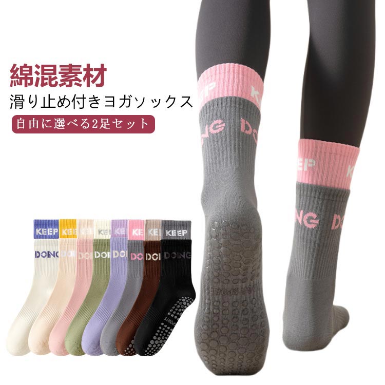 2足 セット 靴下 ヨガソックス レディース ソックス ハーフ丈 おしゃれ 配色 ピラティス 滑り止め リブ クルーソックス トレーニング スニーカーソックス ハイソックス フィ スニーカー用ソックス