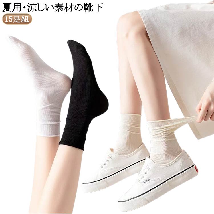 夏用ソックス 綿混 レディース 15足組 薄手 涼しい 夏 締め付けない クルー丈 蒸れない おしゃれ 可愛い ずれない ゆったり むくみ解消 春 履き口