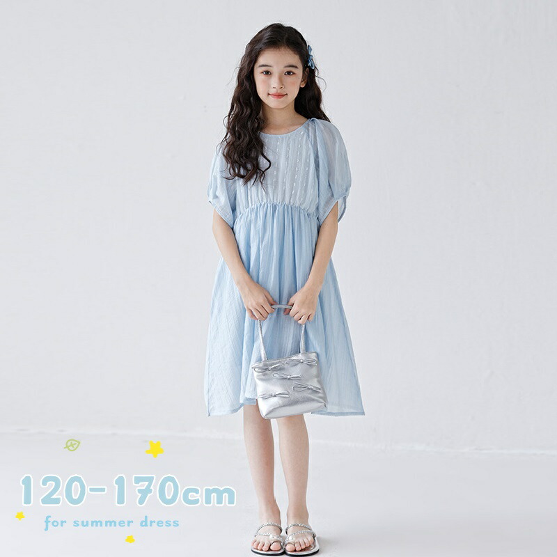 女の子 ワンピース 半袖 160 キッズ 夏 130 ブルー 親子 子供服 夏服 可愛い 大きいサイズ 韓国子供服 おしゃれ 中学生 結婚式 発表会 小学生