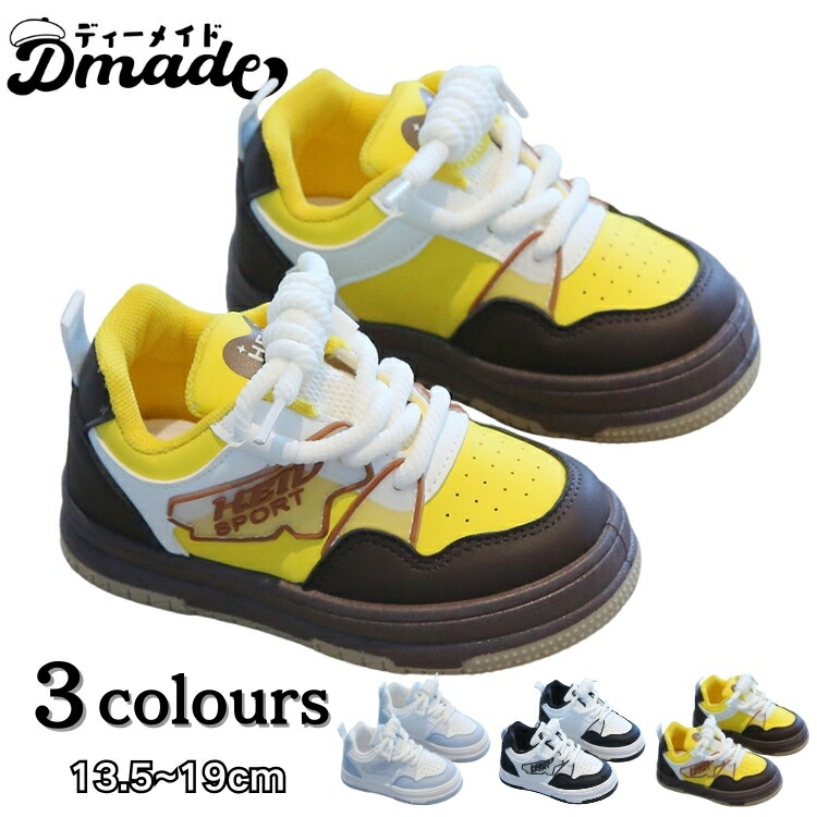 子供 スニーカー 14cm シューズ 子ども 秋 きれいめ 運動靴 歩きやすい 黄 青 黒 キッズ 幼児 スポーツシューズ 女の子 小学生 外出 滑り止め 男の子