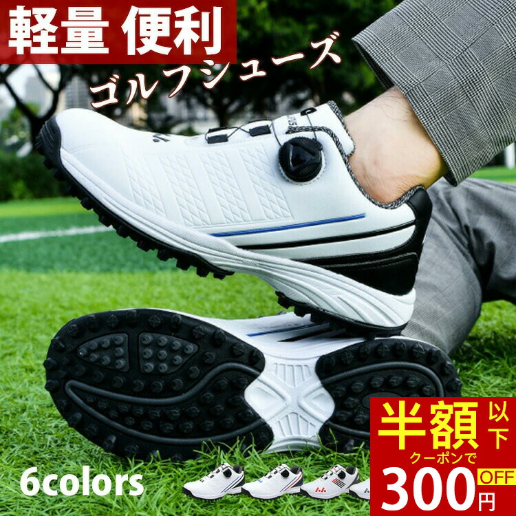 ゴルフシューズ メンズ レディース ダイヤル式 スニーカー 大きいサイズ 幅広い スパイクレス フィット感 軽量 防水 耐久 練習場 疲れにくい 動き 歩きやすい 快適 ラウンド スポーツ 通 紐なし