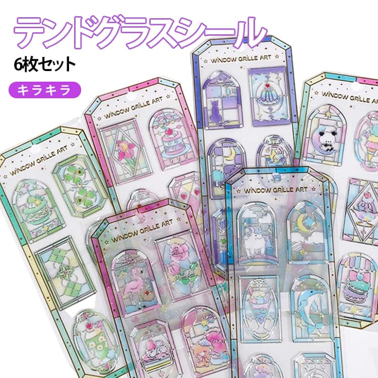 SNS人気 ステンドグラス 女の子 シール帳 手帳 6枚セット 3D 立体感 スイーツ 手帳用シール 手帳ステッカー ステンドグラス風うるつやシール かわいい シール交換 デコシール 日記