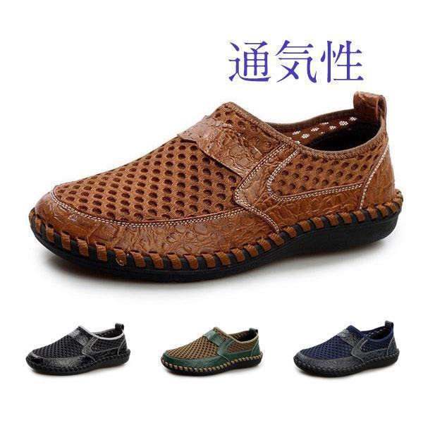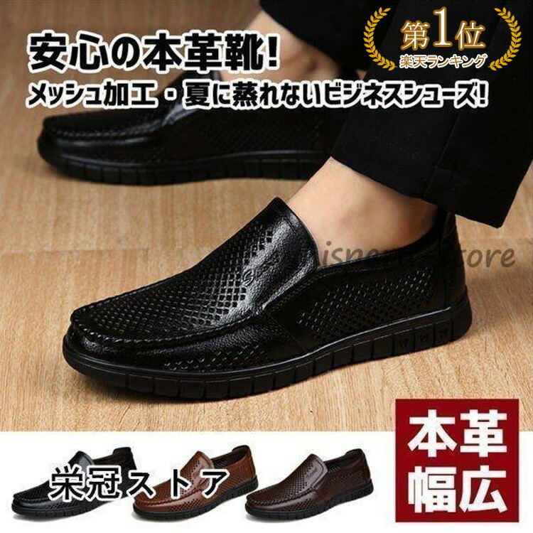 ビジネスシューズ メンズ 本革 メッシュ 夏 通気 蒸れない 幅広 軽量 スリッポン カジュアルシューズ