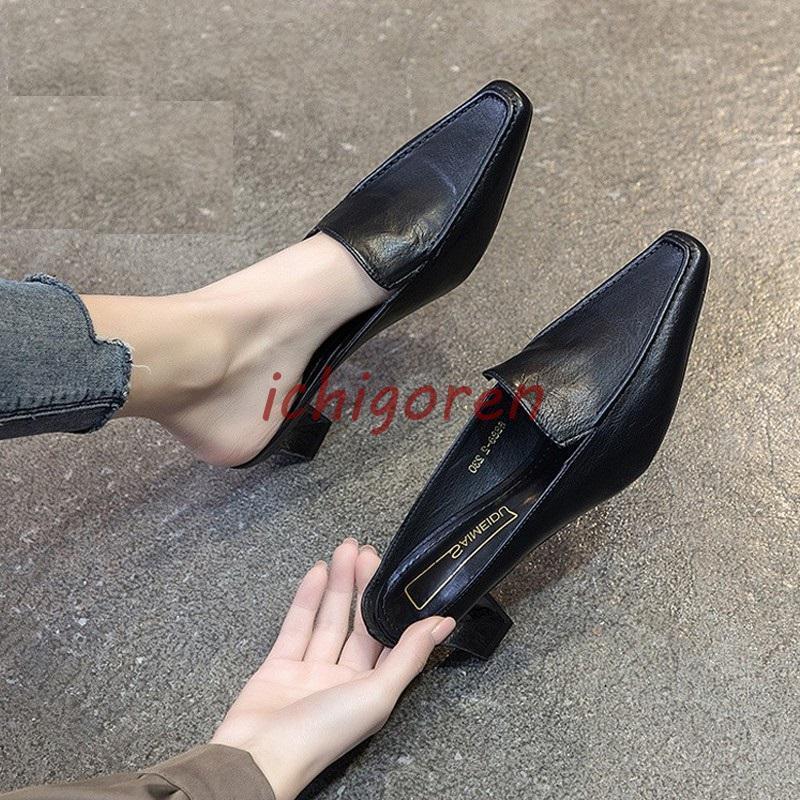 ミュールサンダル レディース ヒール 厚底 痛くない パンプス かかとなし 歩きやすい サンダル スクエアトゥ ローヒール 安定感 レディースミュール 黒