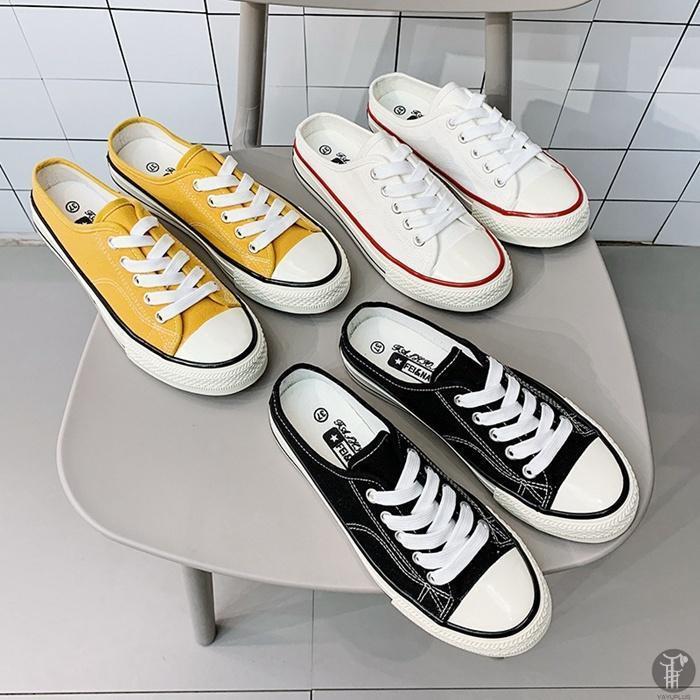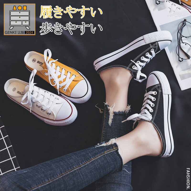 かかとなし スニーカー レディース キャンバス 歩きやすい シューズ ローカット 美脚 春夏 スリッポン