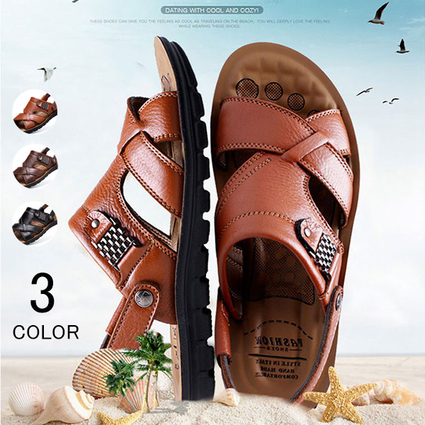サンダル メンズ スリッポン レザー おしゃれ ローマグラディエーター ビーチサンダル 夏 リアルレザーサンダル 春夏 2way フラット 軽い 履きやすい 歩きやすい スポーツ