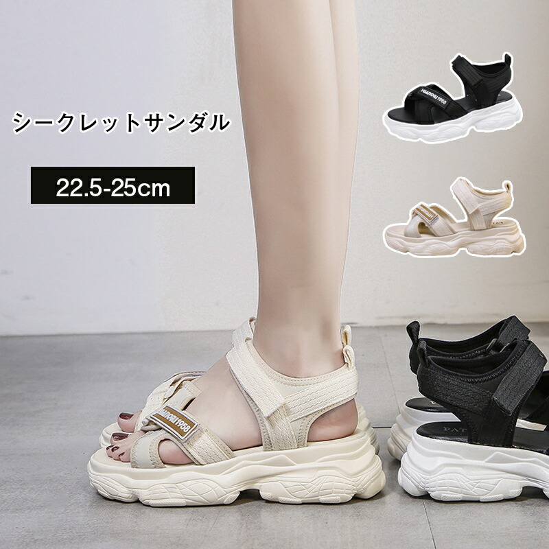 サンダル シューズ スポーツサンダル クッション 5cm 厚底サンダル マジックテープ 韓国ファッション 歩きやすい レデ ベルクロ