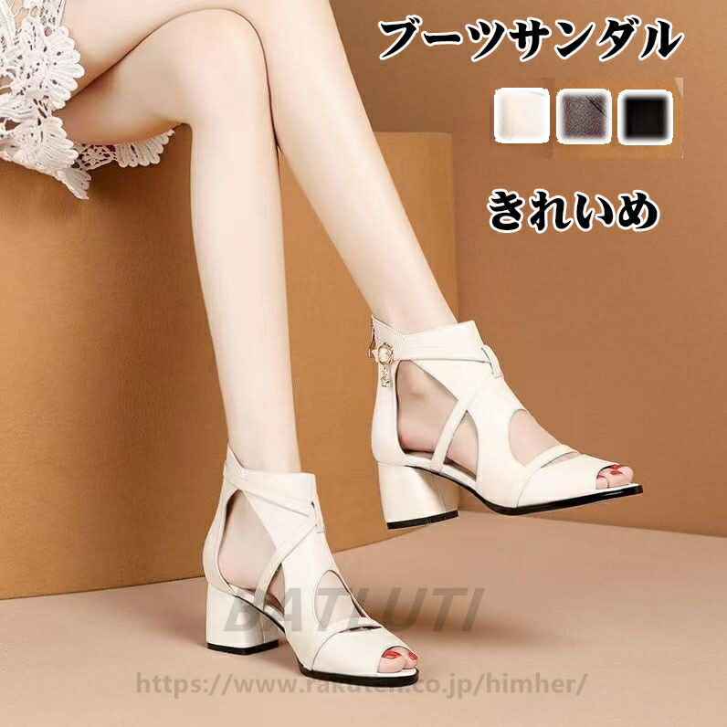 オープントゥ ブーツサンダル レディース サマーブーツ サンダル ブーツ 太ヒール
