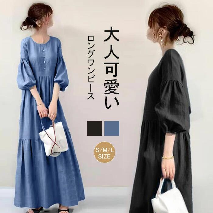 フリル ワンピース 春 レディース きれいめ ロングワンピース 黒 7分袖 ゆったり マキシワンピース 大きいサイズ ロング フレアワンピース シャツワンピース Aライン 体型カバー 春夏 マキシ丈