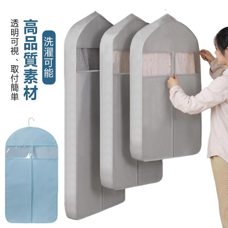 洋服カバー 不織布 衣類カバー 防水 防虫 防塵 防湿 スーツカバー 衣装カバー 雑貨 インテリア 収納 ダストカバー 収納バッグ ファスナー付き 型崩れ防止 底までカバー 衣類収納袋 ク 透明窓付き